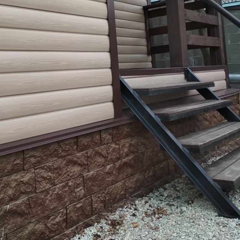 Сайдинг, серия LUX, тип Брус D6S, цвет Рябина и цоколь Флемиш красный жжёный